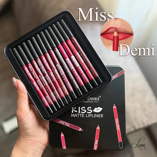 پک مداد لب میس دمی 12 رنگ جعبه فلزی
